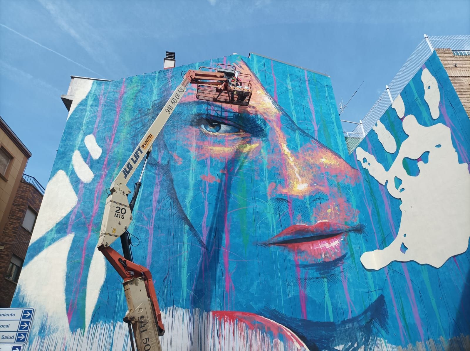 "Lardero por la igualdad" 9 x 13 metros aproximadamente. Revestimiento acrílico para fachadas, aplicado con rodillo, paleta de acero y brochas. Proyecto mural ganador del II CONCURSO DE MURALES, organizado por el Ayuntamiento de Lardero, La Rioja. España.