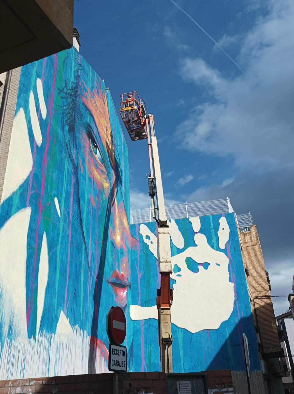 "Lardero por la igualdad" 9 x 13 metros aproximadamente. Revestimiento acrílico para fachadas, aplicado con rodillo, paleta de acero y brochas. Proyecto mural ganador del II CONCURSO DE MURALES, organizado por el Ayuntamiento de Lardero, La Rioja. España.